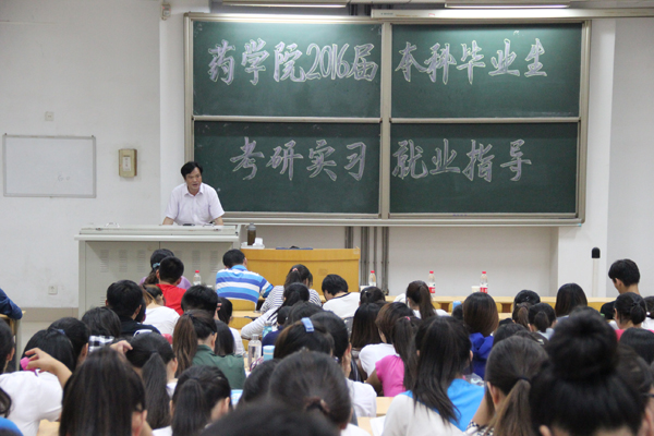 9月21日下午,药学院于教学南楼C2002举办了2016届本科毕业生考研实习就业指导大会。院长王德才、党委副书记张鸣凤分别做了报告,药学院2016届全体本科毕业生参加了此次大会。