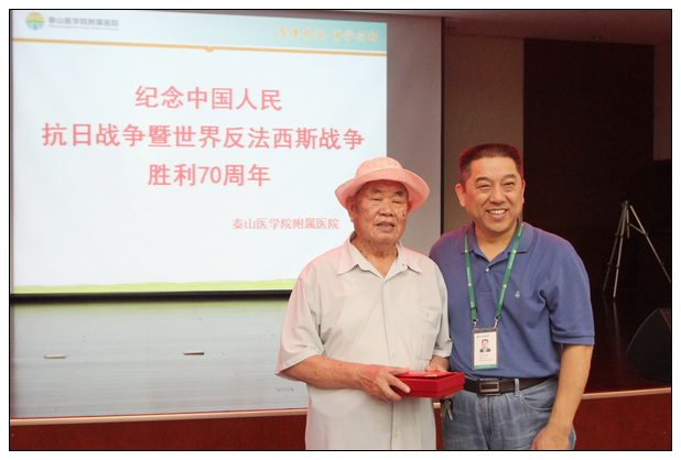 李长勤院长向抗战离休老干部夏继安颁发“中国人民抗日战争胜利70周年纪念章”