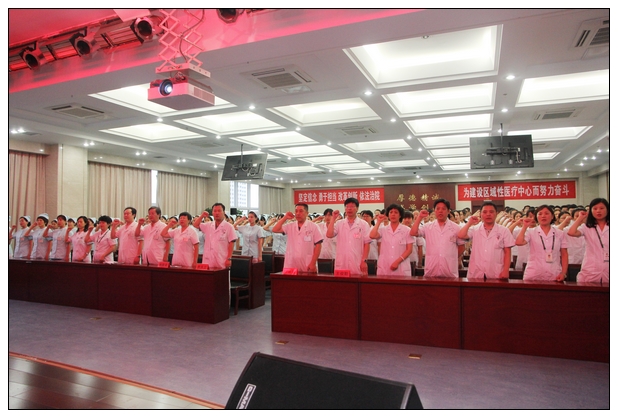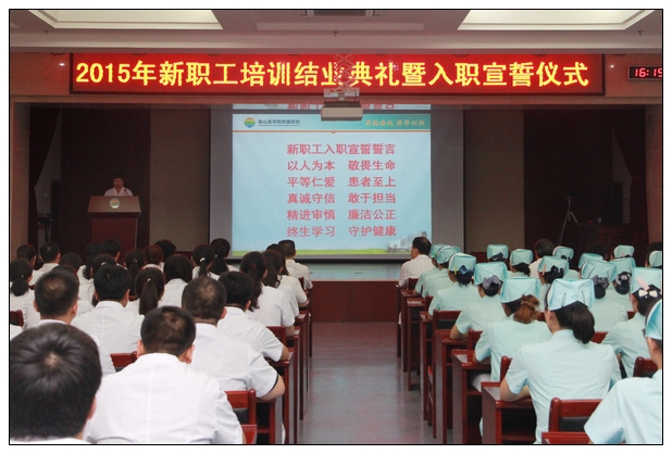 8月7日下午,在为期四周的新职工岗前培训工作全部结束、新职工即将进入工作岗位之际,我院举行了新职工培训结业典礼暨入职宣誓仪式。在家的院领导李长勤、贾庆卫、杨晓雯、王俊勤以及部分临床科室主任和职能科室负责人出席宣誓仪式。来自医疗、医技、护理、行管岗位的251名新职工进行了入职宣誓。