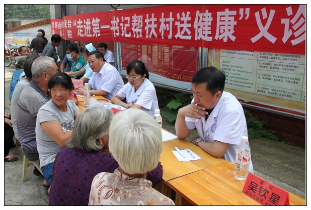 义诊期间,来自消化内科、眼科、骨科、心血管内科、超声科、心电图室等科室的专家和工作人员顶着炎炎烈日,认真为当地老百姓查体、做超声和心电图检查,仔细讲解常见病、多发病的防治知识,耐心指导日常用药,受到当地村民欢迎。得知有一位行动不便的村民希望得到专家的诊疗和帮助,胡建功副书记欣然前往,为该村民进行查体,在治疗方面给予了详细指导。在一上午时间里,我院专家医疗队服务村民200余人,发放院报、健康处方等健康教育材料300余份。