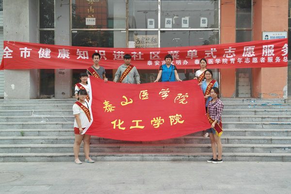 为提高人民健康水平,进一步加强健康教育,根据泰安市文明办、党委宣传部、校团委的安排,7月5日,化工学院组织学生党员志愿者走进青山和青山新村社区进行健康知识宣传。