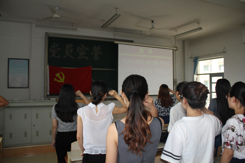 2015年6月30日上午,泰山医学院护理学院全体党员在教学北楼A3003教室举行了入党宣誓大会。