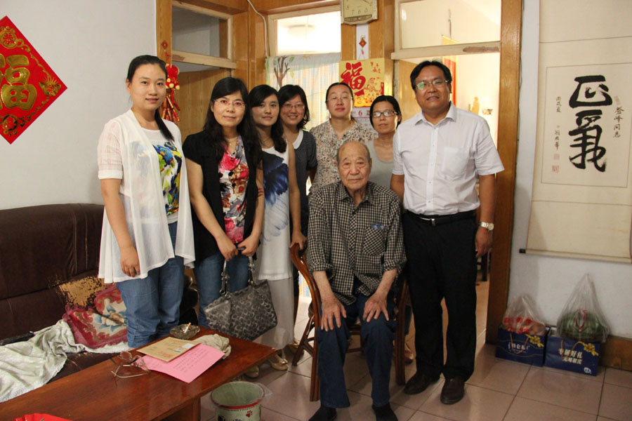 为迎接“七•一”建党节,结合学校纪念中国人民抗日战争暨世界反法西斯战争胜利70周年纪念日宣传教育活动,7月2日上午,基础医学院教工第一党支部全体党员在支部书记张旺信的带领下,组织看望抗战时期老战士、老英雄宋登峰同志。