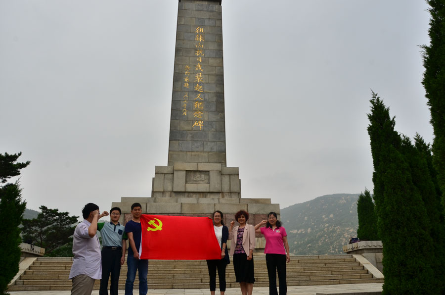 随后,全体党员来到徂徕山革命纪念园,在高大巍峨的徂徕山抗日武装起义纪念碑前,党员们庄严地举起右手,用铿锵有力的声音重温入党誓词。