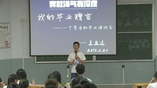 2015年6月24日晚七点,人口与计划生育学院在天外村校区2005教室成功举办“我的毕业赠言——一个学长的毕业演讲会”。本次活动,毕业生代表王立达奉献了他关于自己对大学生活认识和感悟的精彩演讲,人口与计划生育学院毕业班老师以及天外村校区三百余名同学聆听了演讲。