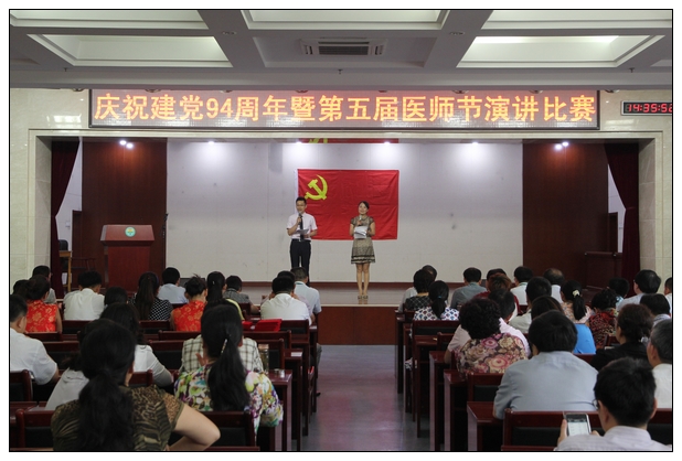 6月26日下午,我院庆祝建党94周年暨中国医师协会第五届医师节演讲比赛在综合病房楼学术报告厅举行。院党委副书记、院长李长勤,党委副书记、纪委书记胡建功,副院长贾庆卫、杨晓雯、肖强、王俊勤观看了比赛并担任比赛评委。各党总支、党支部书记,各团支部书记和全体党员观看了比赛。来自内科、外科、医务、机关、后勤各党总支的12名年轻同志参加了比赛。