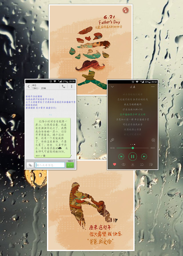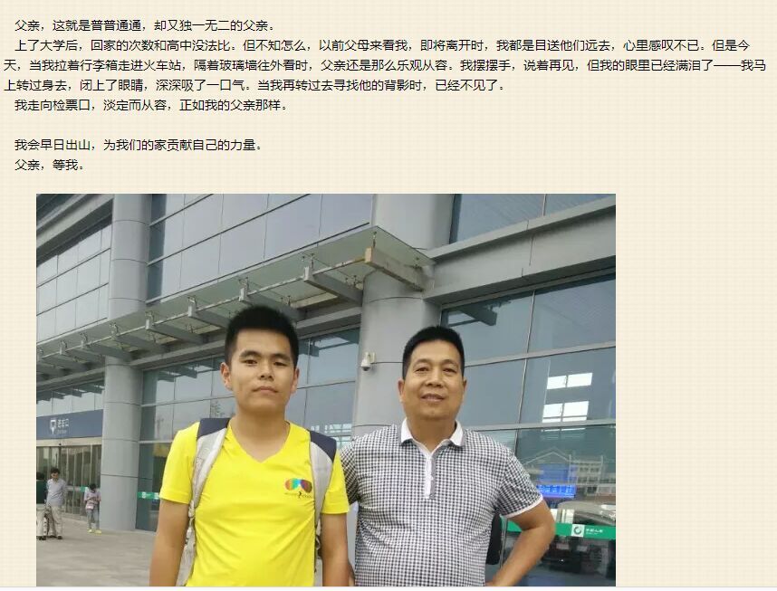 此次活动共有三个主题:“我和父亲合个影”、“一封家书”、“祝福短信”,每个主题都蕴含着浓浓的亲情。在活动中,同学们把对父亲的爱汇成了一封封家书,或真挚或深沉,或温馨或赤诚。一张张温馨回忆留下的合影,一句句肺腑之言写就的家书,一条条简短话语表达的祝福,表达出了感恩之情和良好祝福。