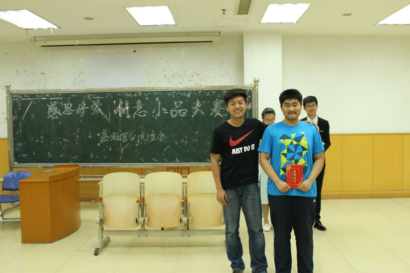 为了庆祝母亲节的到来,感恩母亲的养育之恩和无私奉献精神,5月21日晚七点,由基础医学院主办的“感恩母爱”创意小品大赛在图书馆2-01教室拉开帷幕。 在主持人介绍详细的规则后,四个参赛队开始了精彩的角逐。比赛过程中演员们或幽默的动作语言,或真实的感情表露,或精湛的演技,或认真热情的表演态度,或灵敏的反应能力,无一不感染着在场的每个人,《母亲来了》演绎出了当代大学生的生活状态和父母内心的心酸,很贴近民生,紧跟现代生活。《母亲的一年》演绎出了母亲的酸楚,告诉我们:树欲静而风不止,子欲养而亲不待。《母亲节的礼物》教导我们:回家才是最好的礼物。《家有儿女》展示了母性的光辉。最后一个附加节目《招聘经理》为观众们带来许多欢乐。 经过一个多小时的比拼,4组《家有儿女》荣获冠军,3组《母亲节的礼物》获得第二名,1组《母亲来了》和2组《母亲的一年》并列第三。 这次活动不仅营造了“感恩母亲,体验亲情,传承美德”的良好氛围,更让同学们体会到父母终日含辛茹苦的劳作,更借此传达了爱家、爱父母、爱生活的生活态度。