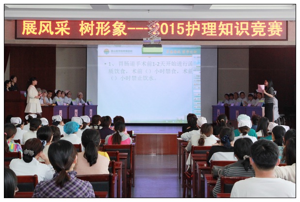 为进一步巩固三甲医院建设成果,推进医院标准化建设,2015年4月27日下午,护理部在综合楼学术报告厅举办了以“展风采 树形象”为主题的护理知识竞赛预赛。副院长杨晓雯以及护理部、工会等职能部门负责同志莅临竞赛现场,全院200余名护士观看了比赛。