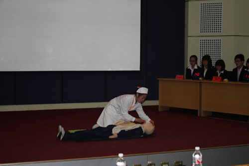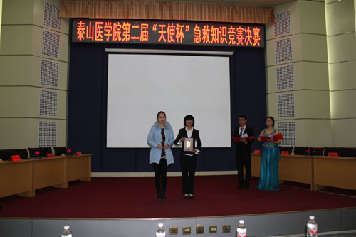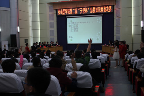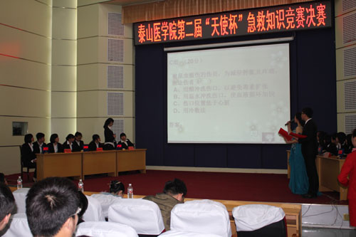 为了普及急救常识,提高同学们面对日常紧急情况的应变能力和挽救他人生命的急救技能,护理学院南丁格尔志愿服务队于2015年4月9日晚,在图书馆报告厅举行了泰山医学院第二届“天使杯”急救知识竞赛决赛。