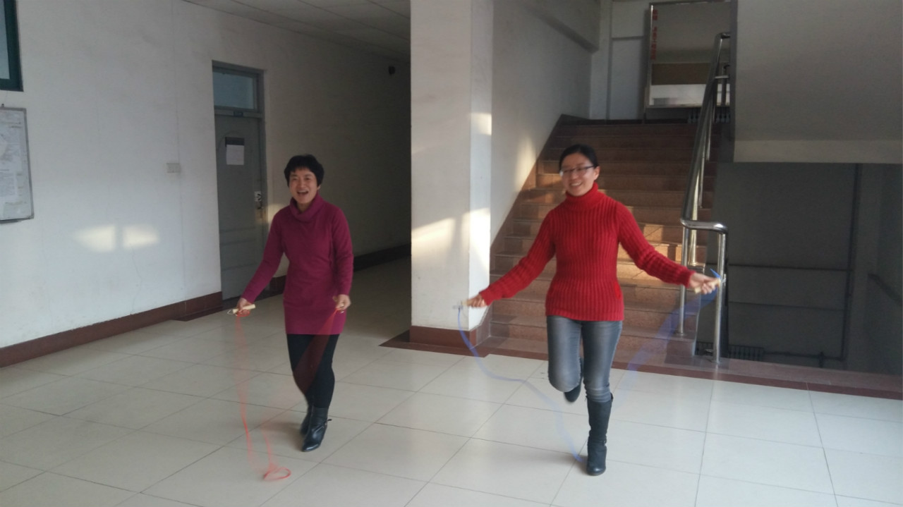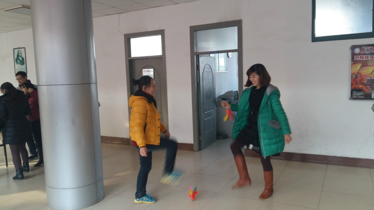 3月16日下午,信息工程学院在物理楼三楼大厅举行女教工踢毽子、跳绳比赛。