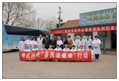 今年是泰医附院“春风送健康”活动的第六个年头,活动的目的是把健康送到广大群众身边,让健康理念和健康知识深入到广大群众心中,促进广大群众养成良好的生活习惯,进一步做好疾病防范。我院女工委、干部保健与查体中心、社区医疗协作部、公共卫生科等部门将把这项公益活动持续开展下去,让更多的群众从中受益。