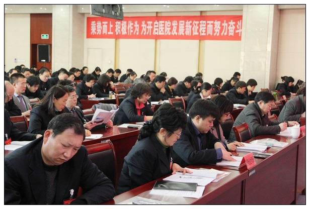 在全面总结了医院2014年的工作和发展取得的成绩后,李长勤深入分析了医院发展面临的问题和挑战,并强调,2015年在医疗卫生体制改革持续深入和区域医疗市场竞争日趋激烈的新形势下,我们必须要建设好自己,以时不我待的紧迫感,建成一批在泰安首屈一指的优势学科、专业品牌,培养和造就一批在泰安首屈一指的专家和学科带头人;要积极引进高精尖新技术、新项目,进行新的战略设计与品牌策划,着力提高医院影响力,让医院品牌深入人心;要进一步增强发展意识、责任意识、忧患意识,坚定信心,攻坚克难,以只争朝夕、敢为人先的精神,努力解决和打破制约医院发展的瓶颈,开辟出医院发展的一片新天地。