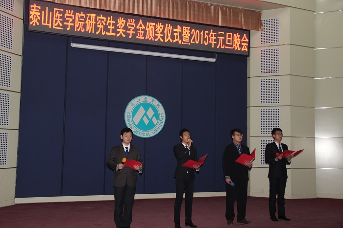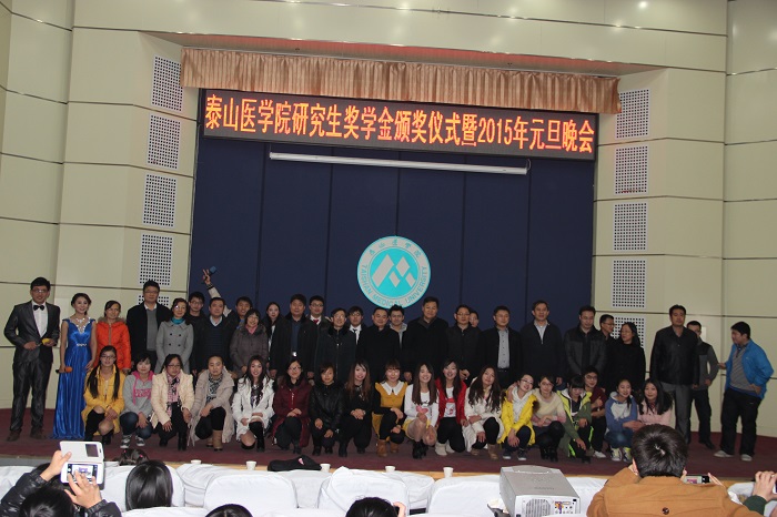 12月29日19时,研究生部在图书馆报告厅举行“泰山医学院研究生奖学金颁奖仪式暨2015年元旦晚会”。