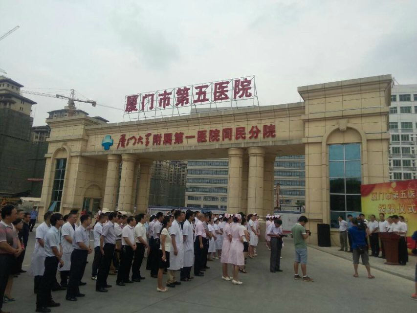 厦门第五医院是由著名侨领陈嘉庚先生于1947年倡建,具有60余年的历史,是一所集医疗、急救、预防、保健、科研、教学为一体的公立非营利性三级综合医院。医院是国家级爱婴医院、福建省道路交通事故伤员救治定点医院、国际紧急救援网络医院。医院科室设置齐全、专科特色显著,现有职能业务科室12个,临床、医技科室42个。拥有肾内科、内分泌科、妇产科、骨科、普外科、神经外科、手足显微外科和急危重症医学部等8个优势专科,心血管内科、呼吸内科、肿瘤内科、泌尿外科、儿科、麻醉科、肛肠科等7个院内重点专科。设有院内急救、急诊ICU为一体的急诊急救体系,成功组织抢救了如多器官功能衰竭等大量急危重症患者。妇科、骨科、泌尿外科、普外科、手足显微外科、胸外科等多个科室普遍开展微创诊疗技术,在区域及周边地区有较大影响。