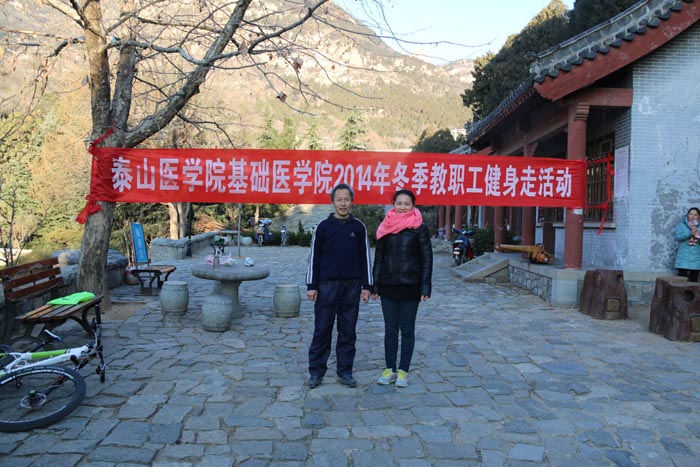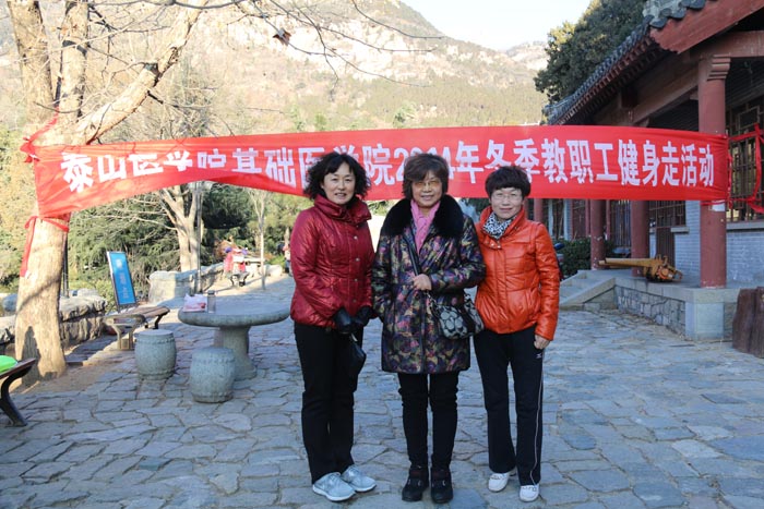 按照校工会年度关于开展教职工“冬季健身活动月”的统一安排,丰富教职工文化生活,倡导“每天锻炼一小时,快乐工作五十年,健康生活一辈子”的健康工作和生活理念,基础医学院分会于12月21日上午8:00-9:00在泰山天外村广场举行冬季教职工环山健身走活动。