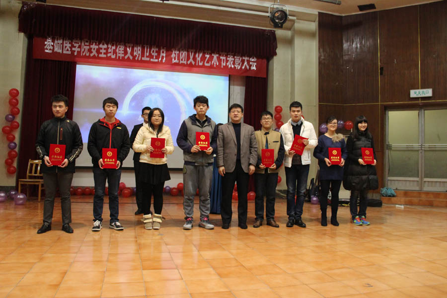 学院团总支书记张乃强宣读了关于表彰基础医学院“安全纪律文明卫生月暨社联文化艺术节”先进个人和优秀班集体的决定。基础医学院党委副书记王鑫为获奖学生代表颁奖,学院各年级辅导员参加了表彰会议。