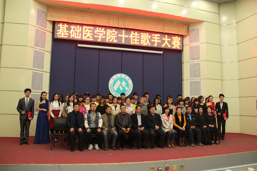 青春激昂,想唱就唱。11月21日,基础医学院第八届新生十佳歌手大赛在校本部图书馆报告厅隆重举行。校团委吴永老师、放射学院团总支书记谢建立、外国语学院团总支书记宋雪、口腔医学院团总支书记孙岳鹏、基础医学院都清芳老师和孙振红老师担任本次比赛评委。