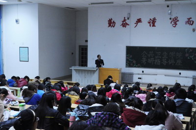 讲座中,宋洪强老师就近几年我国考研的基本形式、国家研究生招生政策的新动向、考研具体问题、我校研究生招生情况及考研的几点建议等五个方面向同学们进行了详细解说。王世涛老师首先就考研政治与平时政治考试不同点向同学们进行了简要分析。同学们介绍了考研政治的答题技巧。胡宗兵老师就考研英语笔试和面试两个环节向同学们展开了详细讲解。杜伟老师要求同学们做好职业规划,形成就业意识,他指出根据就业单位所在行业及地位、有无成长性、管理规范与否、福利待遇等问题作出最合适自己的选择。