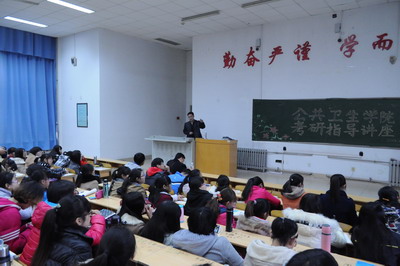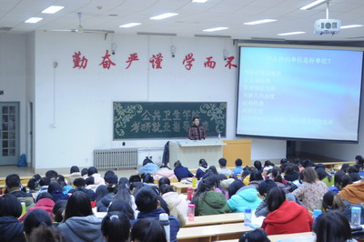 在就业形势日益严峻的今天,为增强同学们在考研及就业道路上的竞争力,我院于11月举办了考研就业指导讲座,旨在解答同学们考研过程和就业过程中遇到的问题。此次讲座分为两场,邀请了泰山医学院研究生招生办公室主任宋洪强老师、泰山医学院社会科学部王世涛老师、泰山医学院外国语学院胡宗兵老师和大学生就业指导中心主任杜伟老师。