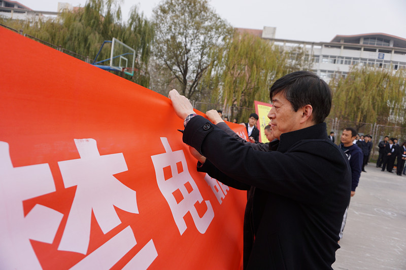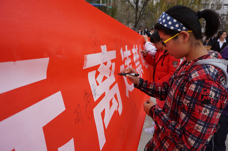 随后,进行了违禁电器签字仪式,在领导老师的带领下,同学们积极踊跃的在条幅上签上自己的名字,表明自己坚决不使用违禁电器的态度。