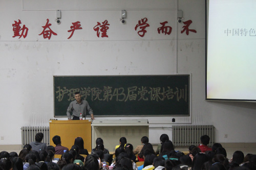 为提高培训质量,本次培训邀请了党委组织部副部长兼党校常务副校长牛玉屾老师,就中国特色社会主义理论体系和社会主义核心价值体系进行了专题解读辅导;外国语学院党总支书记李文老师对刚刚闭幕的十八届四中全会进行了解读,加深了同学们对当前时政的认识;学工处处长华波老师用许多生动的政治实例对科学发展观和“大学生”的关系进行了深刻的解读;护理学院党总支书记秦斌就《中国共产党章程》解读了党的指导思想与宗旨。