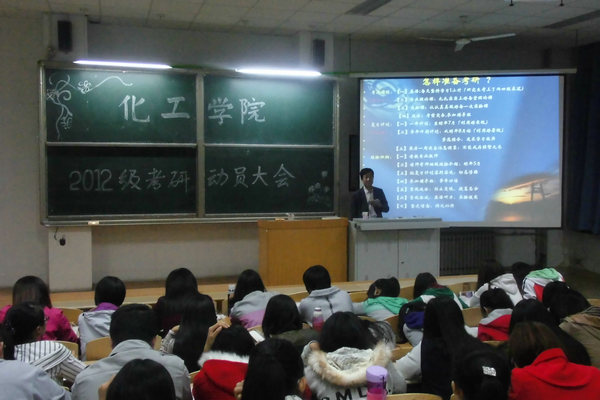 齐聚一堂共话考研风雨路,谆谆教导指点迷津助花开。10月22日晚,化工学院考研动员大会在教学北楼B-05举行。化工学院党总支书记姜守军为2012级全体学生作了一场精彩的考研动员报告。