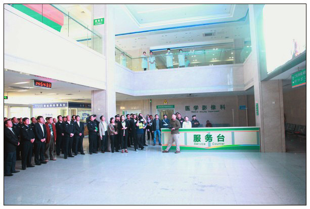 与会领导在我院领导的陪同下视察了我院安保工作及三里派出所驻我院警务室、“警医联动”共建平安医院工作宣传展板和宣传片。会上,泰山区分局党委委员、副调研员赵其钧,我院副院长肖强分别代表泰山区公安局和我院作“警医联动”共建平安医院工作典型发言,介绍了“警医联动”共建机制经验做法。