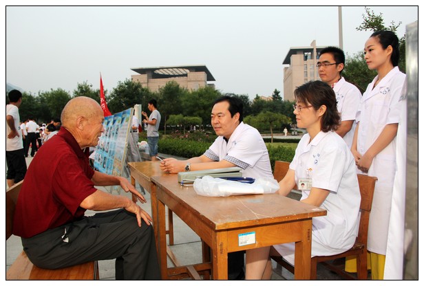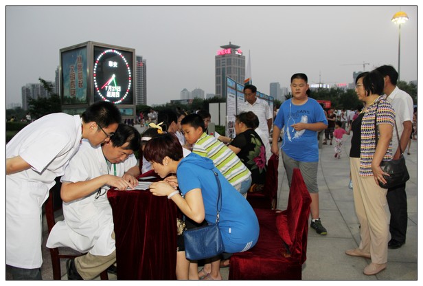 在义诊活动中,我院派出由骨科主任张喜善、呼吸内科主任孟玲、医务处副主任刘钢等人组成的专家义诊队伍,义务为市民诊疗、解答健康问题,受到群众的一致好评。我院同时在广场展出了医院介绍展板,吸引了许多市民驻足观看。