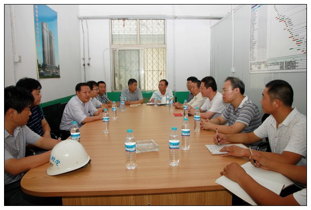 院领导一行与泰颐置业、施工单位负责人和业主委员会代表进行了座谈,认真听取了泰颐置业和施工单位项目负责人就九号住宅楼民生工程进展情况的介绍。胡建功详细了解了防暑降温、工程进度等情况,对施工人员为建设民生工程坚守在高温第一线表示感谢和慰问。胡建功指出,民生工程关系全院广大职工的切身利益,泰颐置业、施工单位要强化安全管理,严格把好质量关,务必将该项工程打造成优质工程、精品工程和职工满意工程。肖强指出,高温天气施工人员要绷紧安全弦,完善落实安全防范和劳动保护措施,做好各项防暑降温工作,确保安全施工、文明施工。