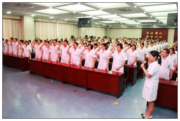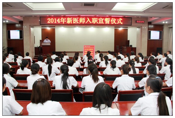 8月1日下午,在为期三周的新职工岗前培训工作即将结束、新医师将要进入工作岗位之际,我院举行新医师入职宣誓仪式。党委副书记、院长李长勤,党委副书记、纪委书记胡建功,副院长贾庆卫、杨晓雯、肖强以及部分临床科室主任和职能科室负责人出席宣誓仪式。173名新医师进行了入职宣誓。