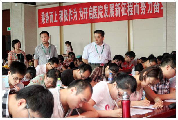 8月1日上午,新职工岗前培训工作进入最后考核阶段,党委副书记、院长李长勤,副院长贾庆卫、杨晓雯在院办、人事科等职能部门负责人陪同下再次到医师理论考试现场督导检查,并对新职工入职后的培训和培养工作提出了严格要求。