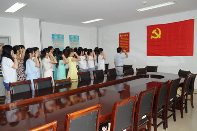宣誓仪式在学院会议室举行。40名毕业生党员庄严宣誓:“我志愿加入中国共产党,拥护党的纲领……”随后,学院领导对毕业生党员提出了殷切期望,要求全体毕业生党员要深入贯彻落实党的十八大和十八届三中全会精神,自觉践行社会主义核心价值观,按照入党誓词规范自己的言论和行动,努力去实践自己对党表达的决心,履行自己对党和人民所承诺的庄严政治责任,把入党誓词化为自己的自觉行动,在工作、学习和生活中充分发挥党员的先锋模范作用,协助老师认真做好毕业教育工作,引导广大同学文明离校,安全离校,温暖离校,为营造良好的校园和谐环境贡献力量,以实际行动向建党93周年献礼。