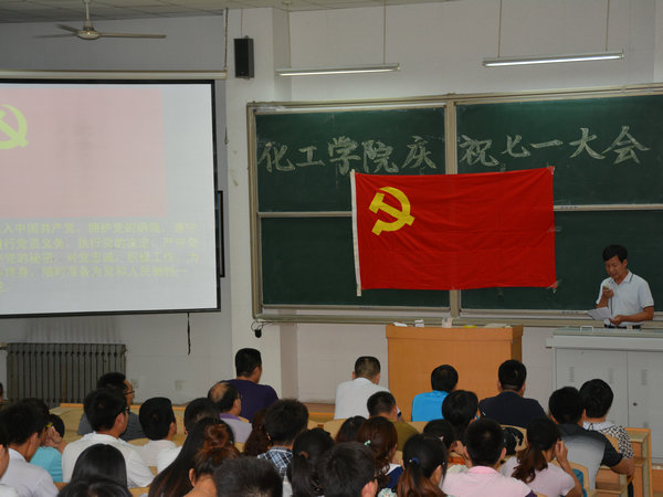 为庆祝中国共产党成立93周年,6月30日下午,化工学院在教学北楼B3018教室举行了“七一”庆祝大会,化工学院全体师生党员参加了大会。