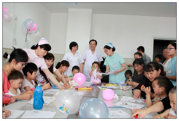 每年的“六一”儿童节,都是孩子们最快乐、最难忘的日子。为了不让孩子们因生病住院而错过他们的节日,儿科医护人员早早的就为孩子们准备好了玩具、气球、水彩笔、画纸等礼物。在儿科病房示教室,彩色气球和吊旗将这里装扮一新,节日氛围浓重。二十余名小患儿围坐在桌子前,在家长和医护人员的指导下聚精会神地折纸、画画,展示着自己的才艺。泰山医学院附属医院副院长、儿科专家杨晓雯教授,儿科主任史宝海教授,护理部主任杨朝霞副主任护师亲切看望了患儿们,并为他们送上了儿童节礼物和节日祝福。“阿姨,看,这是我画的画。”一位小朋友很快完成了自己的创作,展示给医护人员。“对于我们儿科医护人员来说,每一幅作品代表一颗纯真的心,他们是最棒的!”医护人员将孩子们的绘画作品贴到病房最显眼的位置,灿烂的色彩,欢乐的笑声,让整个病房充满了温馨和关爱。