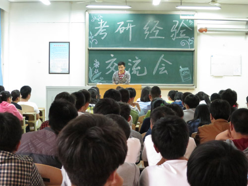 王伟把自己在大学期间任班长并兼职学生会的经历及复习考研、复试面试到被上海交通大学录取为硕士研究生的经验体会毫无保留的介绍给大家。就同学们普遍关心的如何处理学习与恋爱的关系,如何分配学习与班委工作时间,如何戒掉网瘾等问题为学弟学妹们做了精彩的报告。告诫大家杜绝浮躁、认识不足、早作准备,脚踏实地的学好医学专业知识。切忌侥幸,杜绝挂科。坚持日常学习英语,集中突击公共科目,有计划、有目标的复习报考,争取顺利考取自己心目中的理想学府。