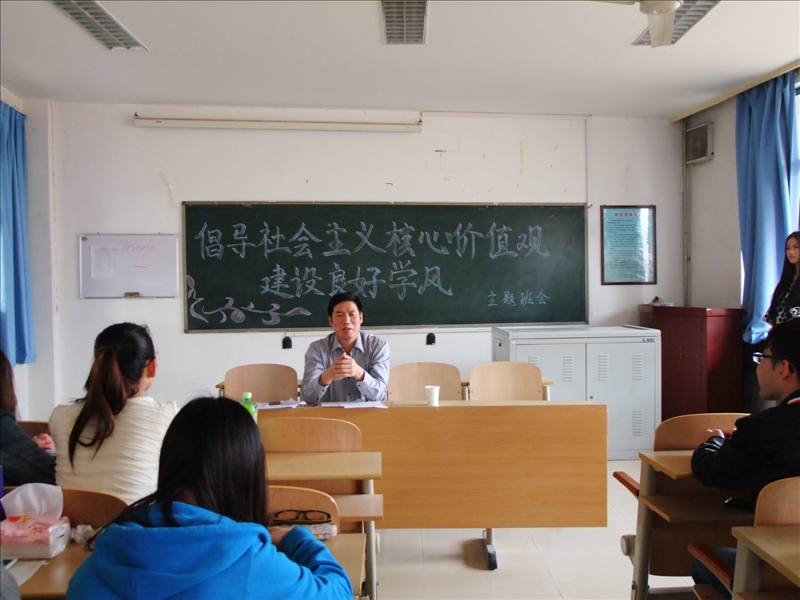 在2013级康复治疗学1班的主题班会上,总务处处长刘均民围绕服务育人、管理育人与同学们进行了交流。刘均民针对校园基础建设,饮食服务管理,公寓维修等问题听取了同学们的意见和建议;他勉励同学们要努力学习,成长成才。