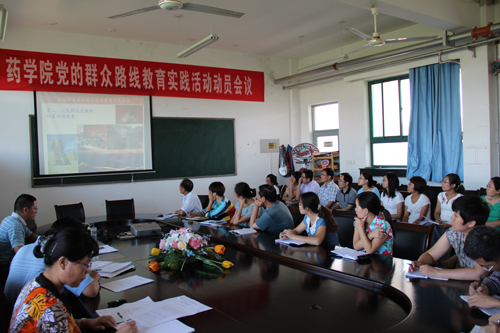 根据开展党的群众路线教育实践活动安排,2013年8月31日上午,药学院在深入动员、暑期自学的基础上,组织全体教工党员、处科以上干部、民主党派代表共计30多人,进行党的群众路线专题集中学习。