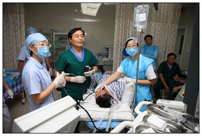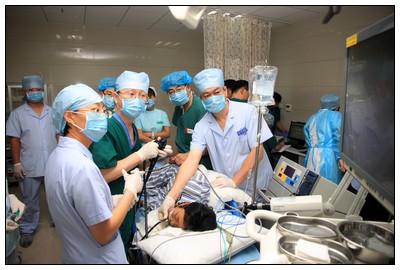 开幕式结束后,先后进行了专家讲座和消化内镜诊疗操作手术演示。中华医学会消化内镜学会候任主任委员、中国医师协会消化医师分会副主任委员、首都医科大学附属北京友谊医院副院长张澍田教授,贾继东教授,刘吉勇教授,山东省消化专业委员会副主任委员、济南军区总医院消化内科主任孙自勤教授,分别围绕着“消化系早癌的诊断——理念和方法”、“肝硬化的分期及综合治疗进展”、“消化内镜新技术”、“ESD及相关技术并发症防范与处理”等议题展开了讲座和研讨。来自省内外和我院的专家作了EMR、ESD、EUS、食管狭窄扩张及支架植入术等内镜诊疗手术演示。