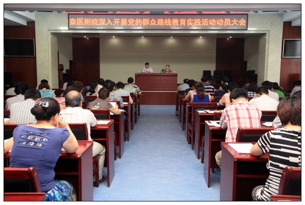 7月26日下午,我院党的群众路线教育实践活动动员大会在新综合病房楼学术报告厅召开。党委书记张辉主持会议并作了题为《提高认识、转变作风、凝心聚力,深入扎实地开展党的群众路线教育实践活动》的动员讲话。学校党建督导员张开红同志出席会议并讲话。党委副书记、院长李长勤,党委副书记胡建功,副院长高松、贾庆卫、杨晓雯、肖强、王俊勤出席大会。全院中层干部,高级专业技术人员,地市级以上人大代表、政协委员,各党总支和支部书记,部分一线职工代表参加动员大会。
