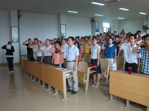 为庆祝中国共产党成立92周年,7月1日下午,化工学院在教学北楼B3018教室举行了新党员入党宣誓、老党员重温入党誓词大会。化工学院党总支书记姜守军、院长曹晓群、党总支成员出席此次大会。