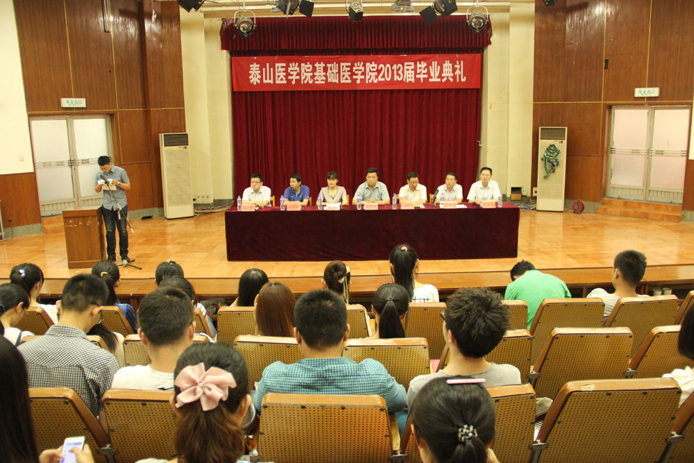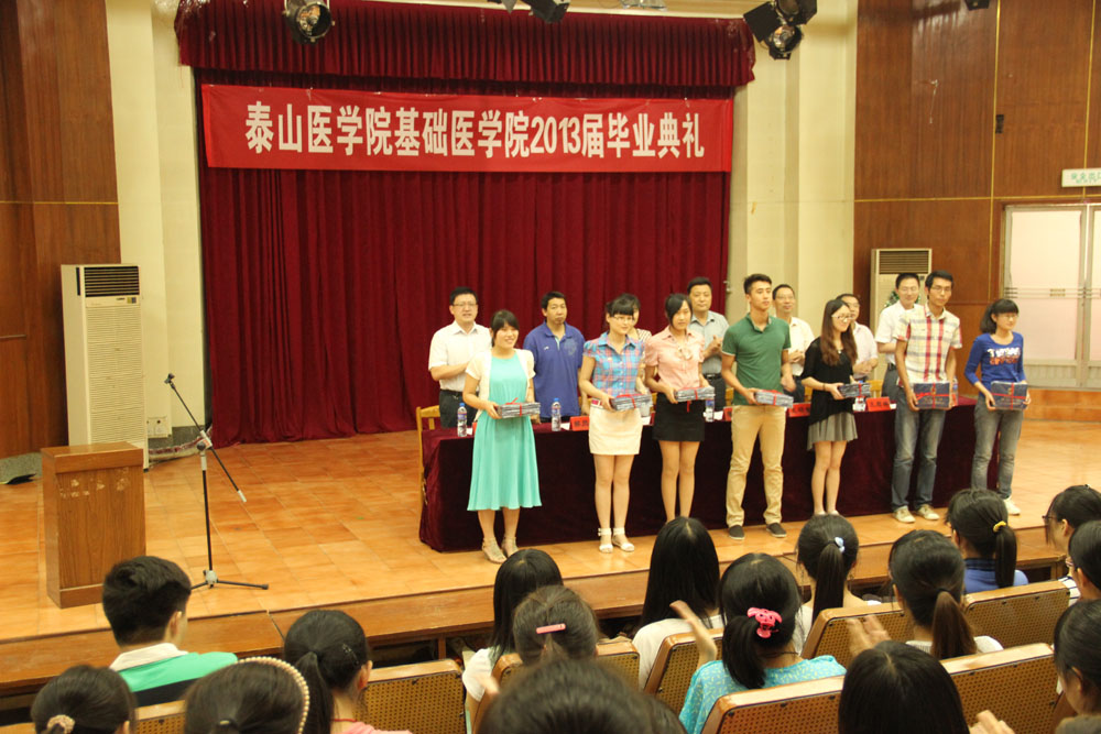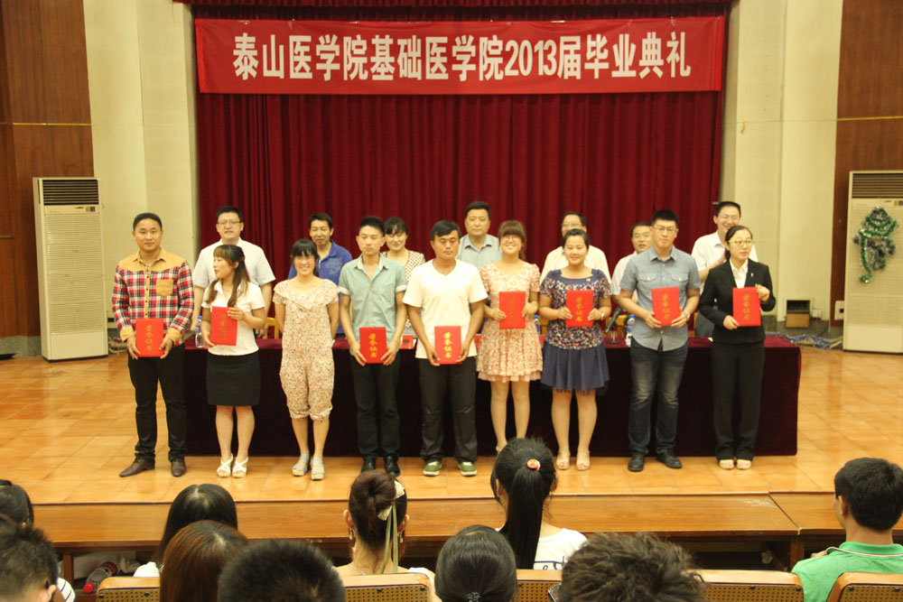 毕业典礼上,基础医学院党委书记王昭金宣读了《关于表彰2013届山东省优秀毕业生的通报》及《关于表彰泰山医学院优秀毕业生的通报》。基础医学院领导和老师为毕业生颁发了毕业证书,为省级优秀毕业生和校级优秀毕业生颁发了荣誉证书。