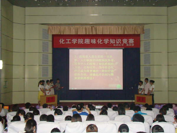 为引导同学们感受化学的魅力,开拓学习视野,6月3日,化工学院第五届趣味化学知识竞赛在图书馆报告厅举行。