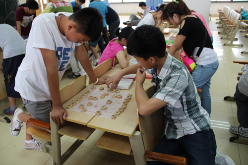本次棋艺大赛由跳棋、五子棋和象棋三个项目组成,分别采取淘汰制及循环赛制,选手以积分排名进入决赛。在比赛中,参赛选手们本着友谊、奋进、团结的宗旨,沉着应战,不畏强敌,每走一步、每落一子都经过深思熟虑。决赛更是势均力敌,局势险象环生,选手深陷僵局时,不慌不忙,沉着应对;遭遇平局时,不急不躁,妥善处理;手握主动,不骄不矜,保持清醒。此次活动也吸引了很多同学们前来观战,围观的同学认真关注棋盘上的形势,为比赛同学捏着一把汗。选手们在这方寸大小的棋盘上排兵布阵、对阵厮杀,以智慧和耐性抗衡强劲的对手。经过激烈的角逐,2012级制药工程专业的毛鹤﹑李继峰同学分获跳棋﹑象棋冠军,2012级药学本科专业岳华获五子棋冠军。