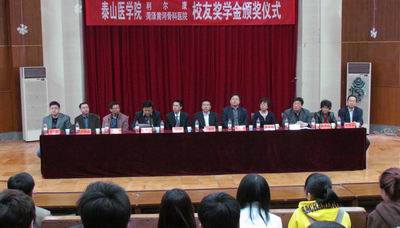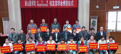 2013年4月26日上午,由我校校友朱汉泉、张振洞设立的“利尔康奖学金”和“菏泽黄河骨科医院奖学金”颁奖仪式在天外村校区举行,副院长彭春雷参加仪式并讲话。