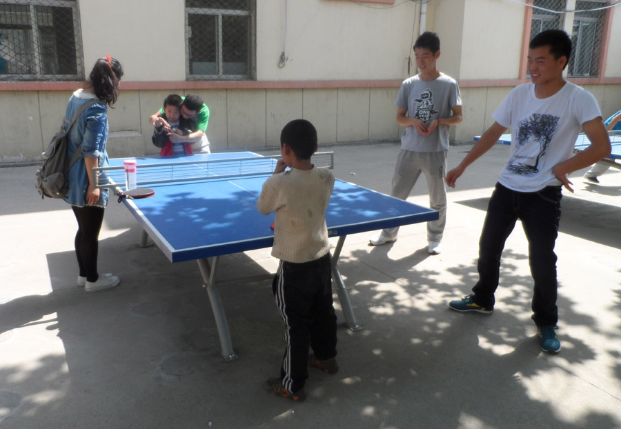 活动中,同学们和聋哑儿童打成一片,一块嬉戏玩闹,脸上挂满了微笑,还有一些内向的孩子,通过我们的积极鼓励,也慢慢融入其中。为了和这些可爱的孩子进一步沟通,我们还准备了篮球、乒乓球和羽毛球活动项目,手把手的教给他们各种技巧。同学们都感觉和孩子们在一起的时间总是过得那么快,和孩子们在一起的经历又是如此的难忘:他们会很小心翼翼的问我们可不可以给他们折一个纸鹤,会很兴奋的教我们手语,他们会因为我们一句肯定的语言而欢呼雀跃,会因为我们的一句鼓励的话语而信心百倍,也会在高兴的时候主动拉着我们的手一起做游戏,用手语表达着他们很喜欢我们,在我们走的时候拉着我们的手不让我们走,万分纠结后叮嘱我们一定要再来看他们……