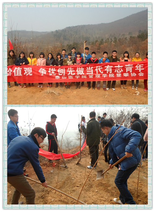 为弘扬雷锋精神,人人为环境保护和生态文明建设做贡献,共创美丽泰安,3月9日,管理学院登攀协会与齐鲁大众网联合举办了主题为“植绿家园治污减霾共享齐鲁蓝天白云”的公益植树活动。