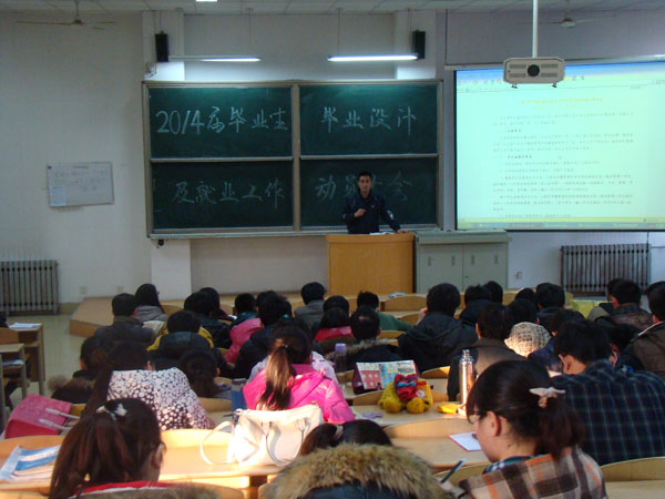通过本次毕业生工作会议的召开,学院2014届毕业生了解了有关毕业设计的安排和更多的就业信息,以及在就业过程中应注意的各项问题,为做好学院明年的毕业生工作奠定了良好的基础。学院全体2014届毕业生参加了会议。