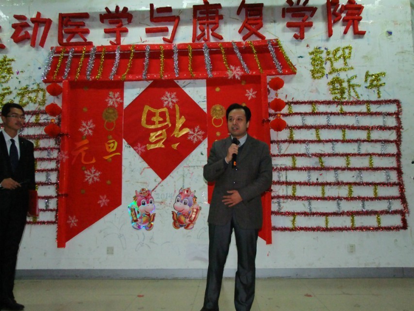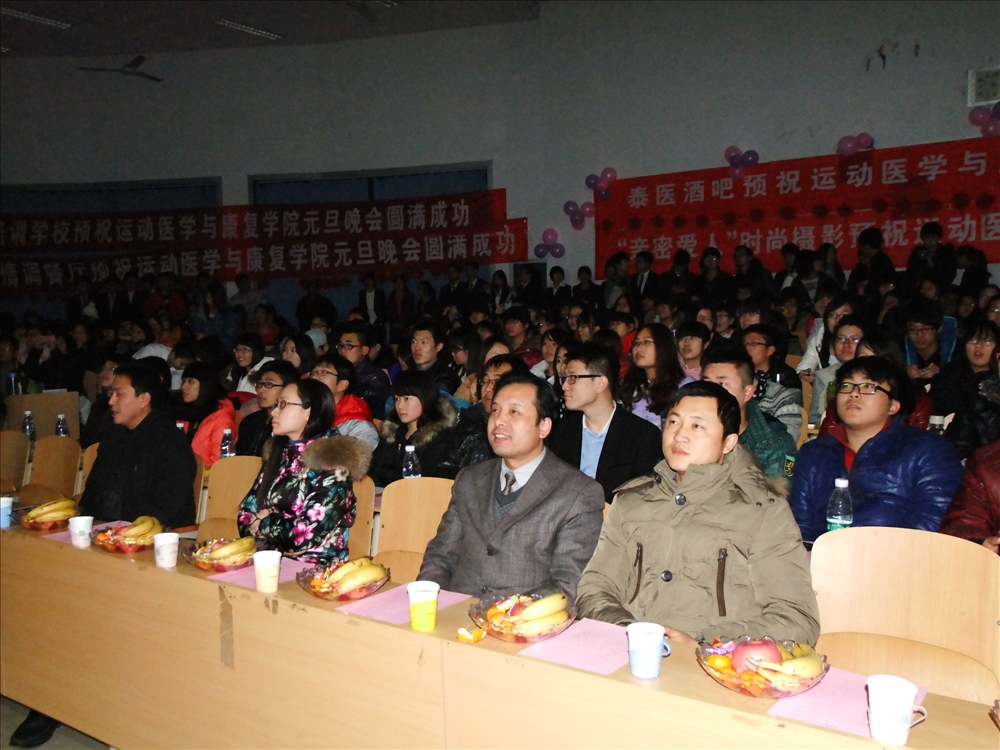 银蛇呈祥辞旧岁,宝骏携瑞迎新春。12月23日,运动医学与康复学院 2014年“青春运动,喜迎新年”元旦联欢晚会在物理楼报告厅举办。院党总支副书记刘方永、学工办、团总支负责人、教师代表与300多名同学欢聚一堂,共同观看了晚会。