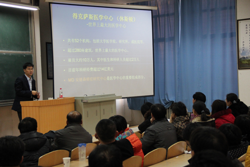 12月13日下午,教学北楼A1012座无虚席,来自美国德克萨斯医学中心的丁志勇博士为药学院师生做了题为“癌症研究进展及P13K/AKT信号通路”的学术报告。药学院院长王德才及部分老师参加了这次学术报告会。